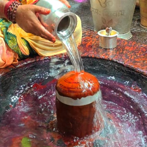 Ganga Jal Abhishek or Rudrabhishek with Ganga Jal is a form of worshiping Lord Shiva in his Rudra avatar, in which a Shivalinga is bathed with Ganga Jal in a thin stream from a Brass vessel called ‘Shringi’, which is constantly poured over the deity, along with chanting of Vedic mantra called the Rudra Sukta also referred to as Rudri Paath.