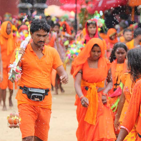 An arduous 100+ km trek carrying sacred Ganga Jal from Sultangung for Rudrabhishek at Baba Baidyanath Dham in Deoghar (Jharkhand) . It takes an able bodied devout between 3 to 5 days to complete this journey. Optionally a part of the scared Gangajal is offered at Baba Basukinath Dham.